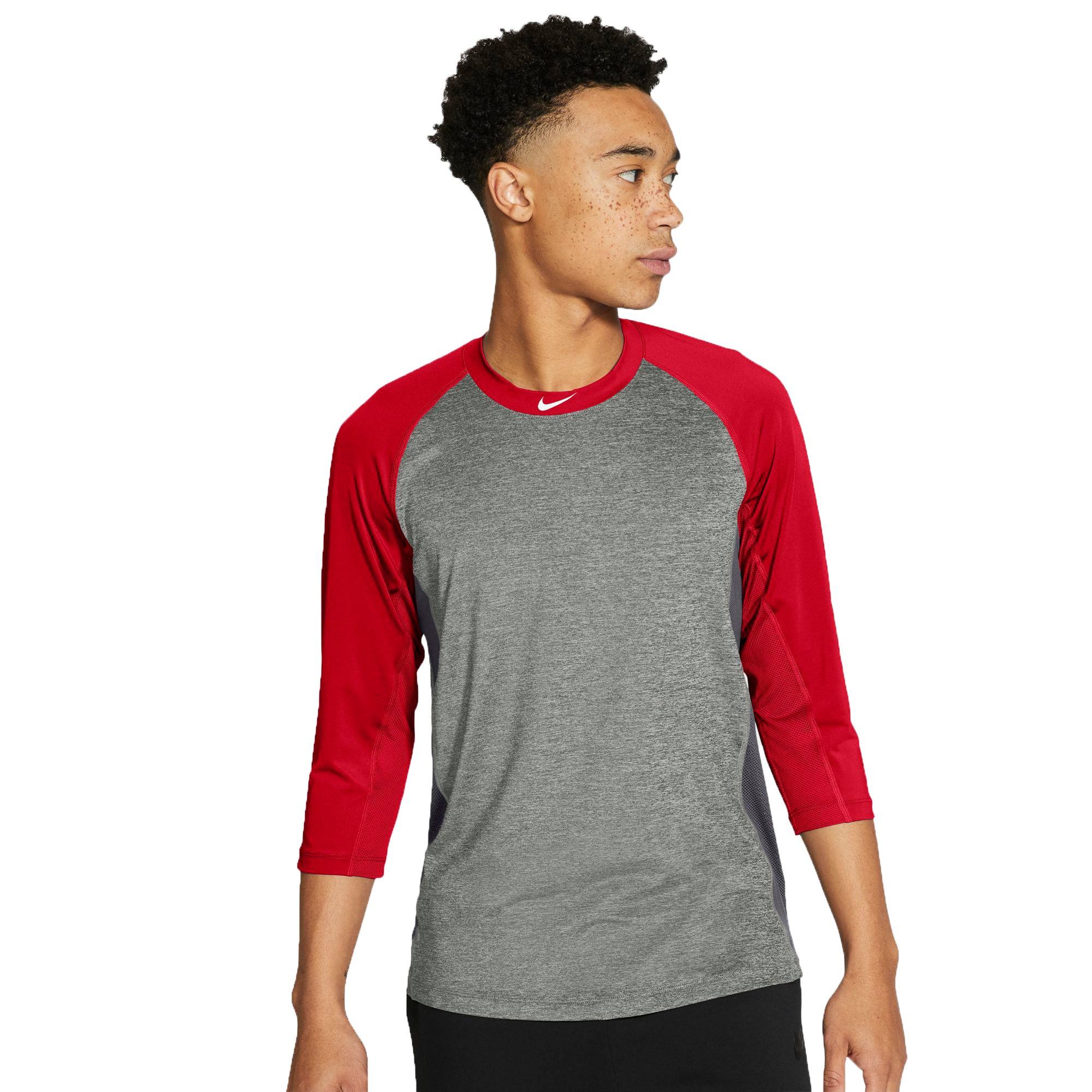 Nike Men S Pro Dri Fit 3 4 Sleeve Baseball Tee Grey Red Hibbett City Gear